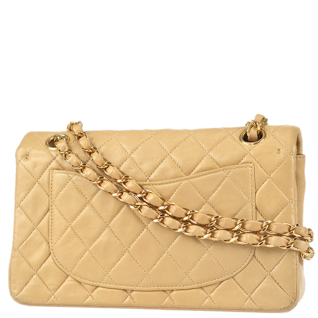 Chanel 2000-2001 Classic Double Flap Small Shoulder Bag Beige Lambskin