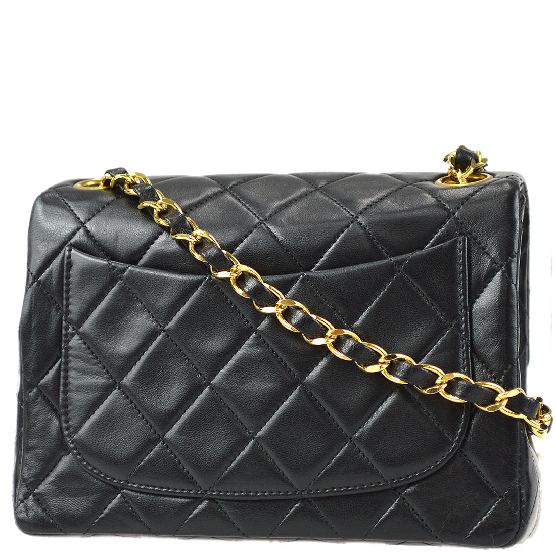 Chanel 1989-1991 Classic Flap Mini Square Chain Shoulder Bag Black Lambskin