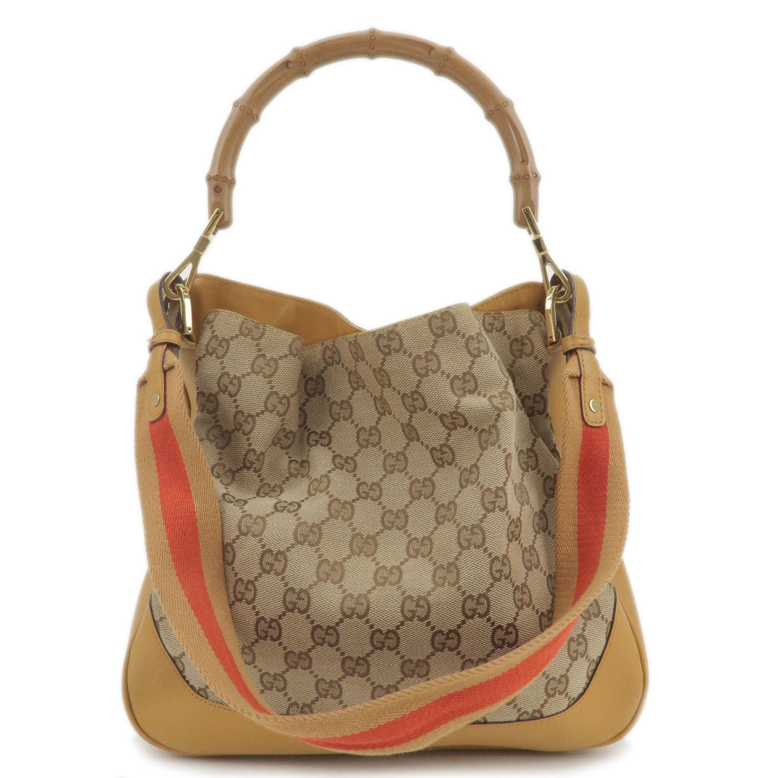 GUCCI Bamboo GG Canvas Leather 2Way Shoulder Bag 001.4095