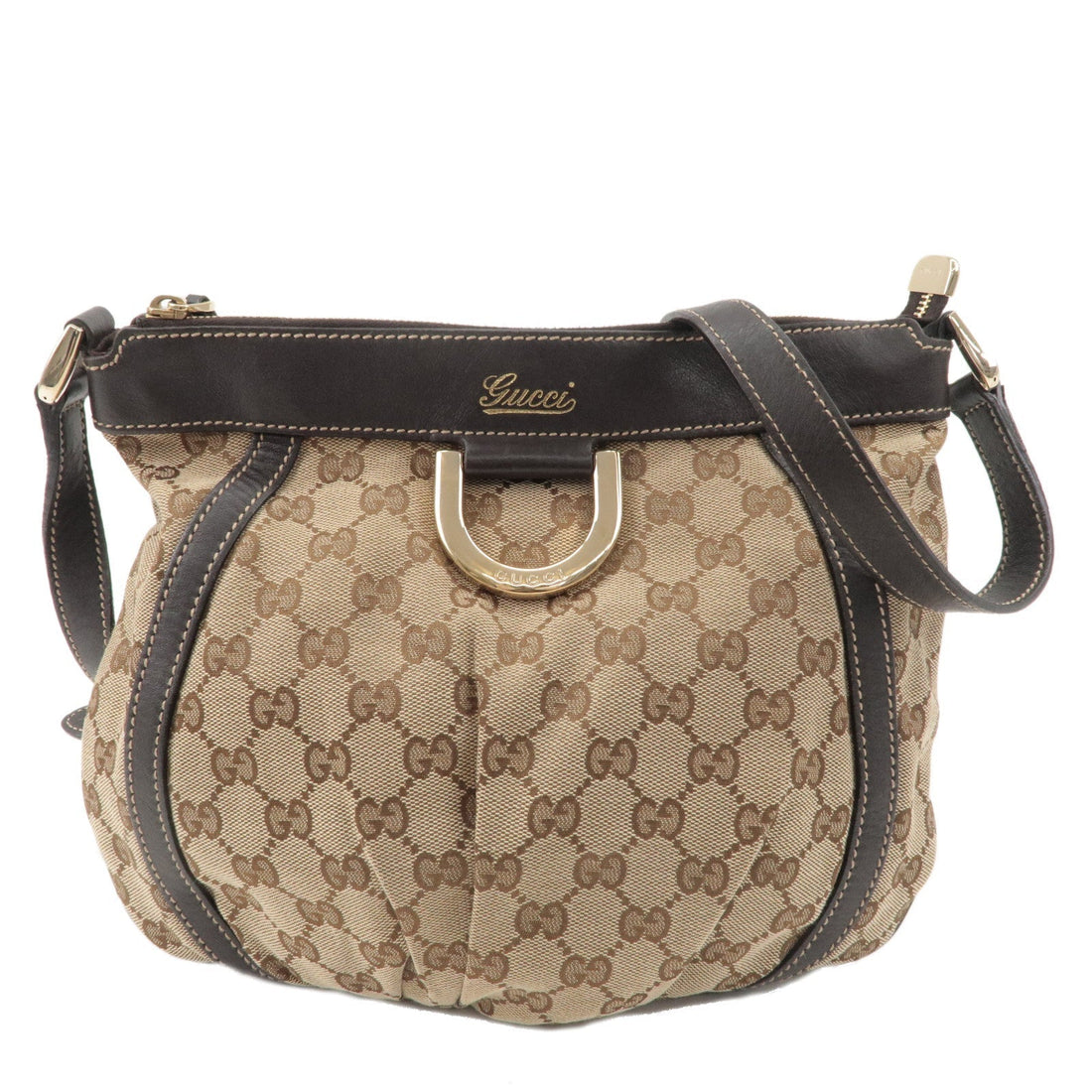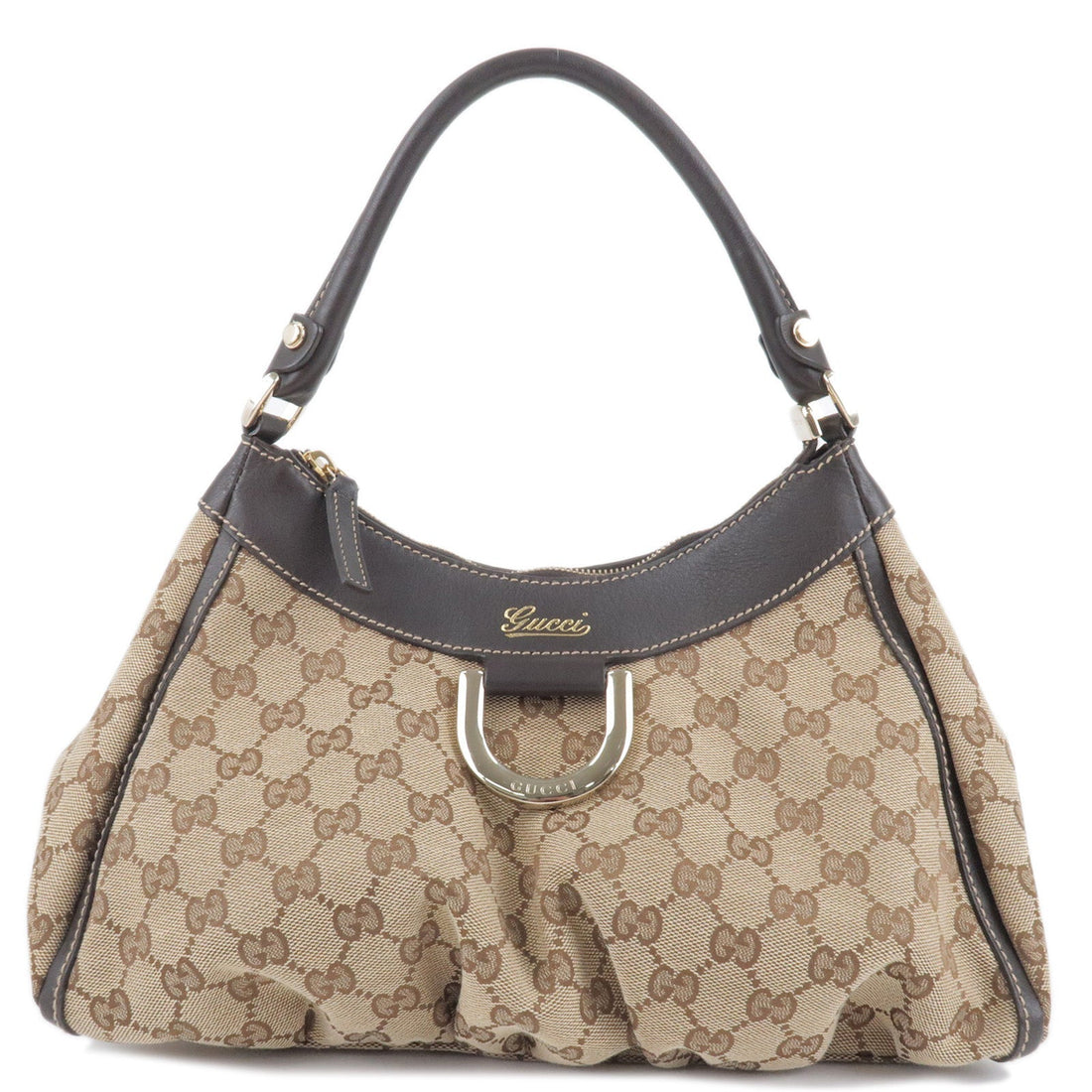 GUCCI Abbey GG Canvas Leather Shoulder Bag Beige Brown 190525