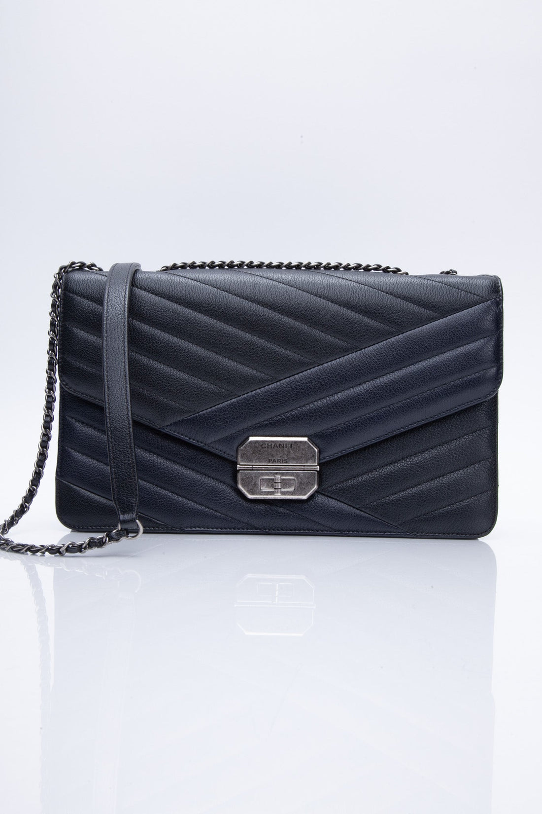 Chanel Cambon Ligne Shoulder Bag Black Calfskin 98565