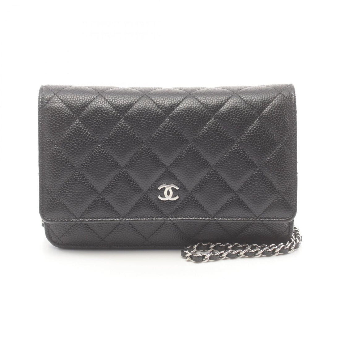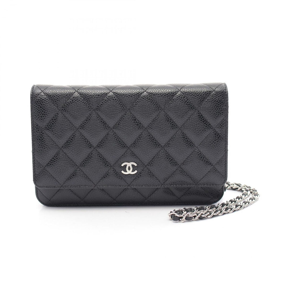 Indulge in timeless elegance with the Chanel Matelasse Chain Shoulder Bag in classic black grained...