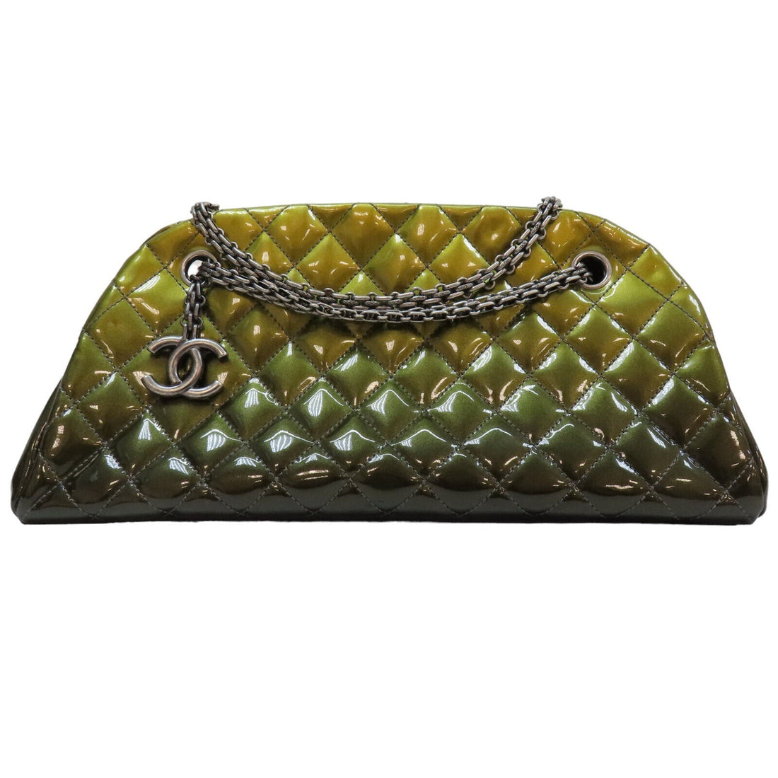 Introducing the exquisite Chanel Matelasse Chain Shoulder Bag in stunning green patent leather. This iconic...