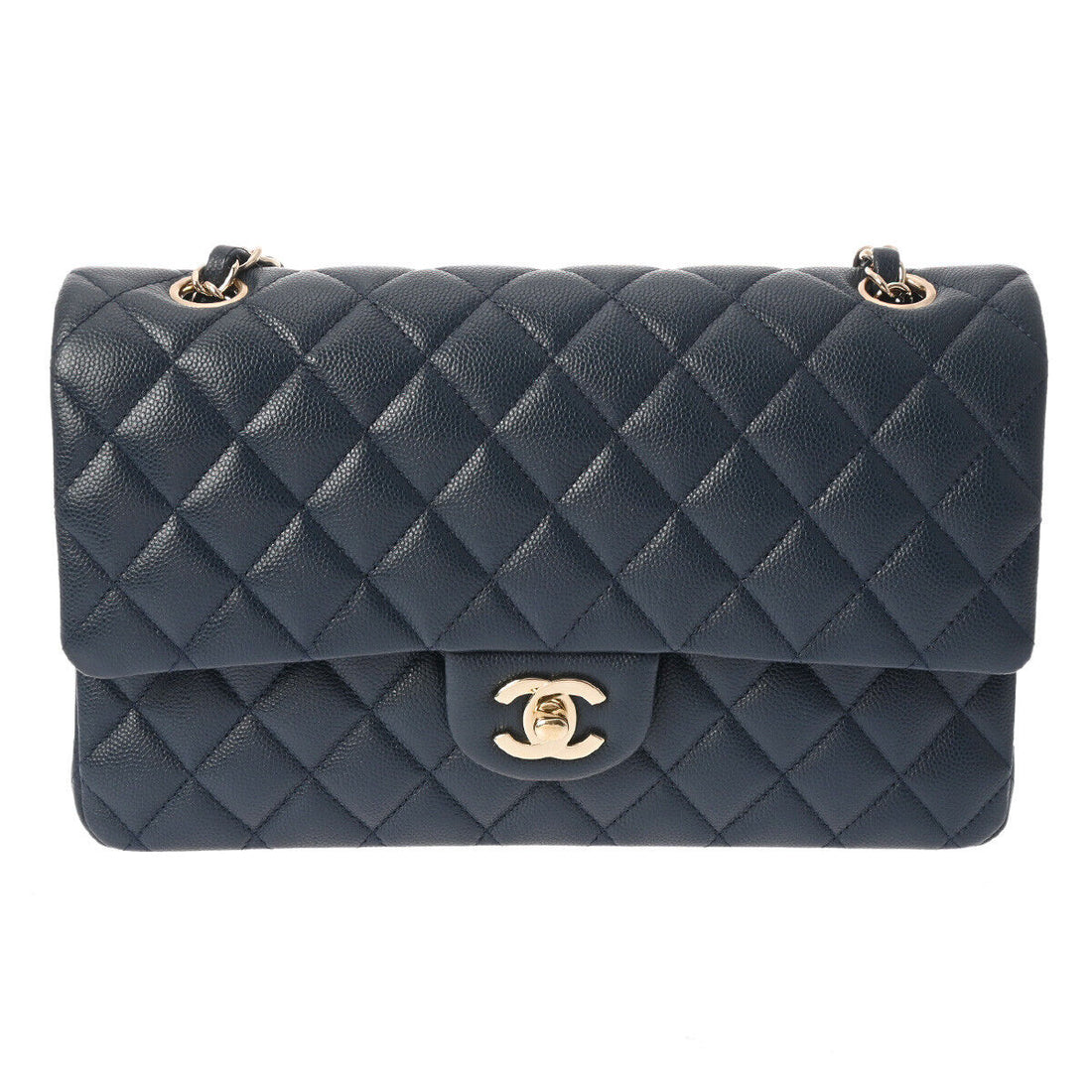 Introducing the exquisite Chanel Matrasse Chain Shoulder W Flap 9.8' in elegant navy. Crafted with...