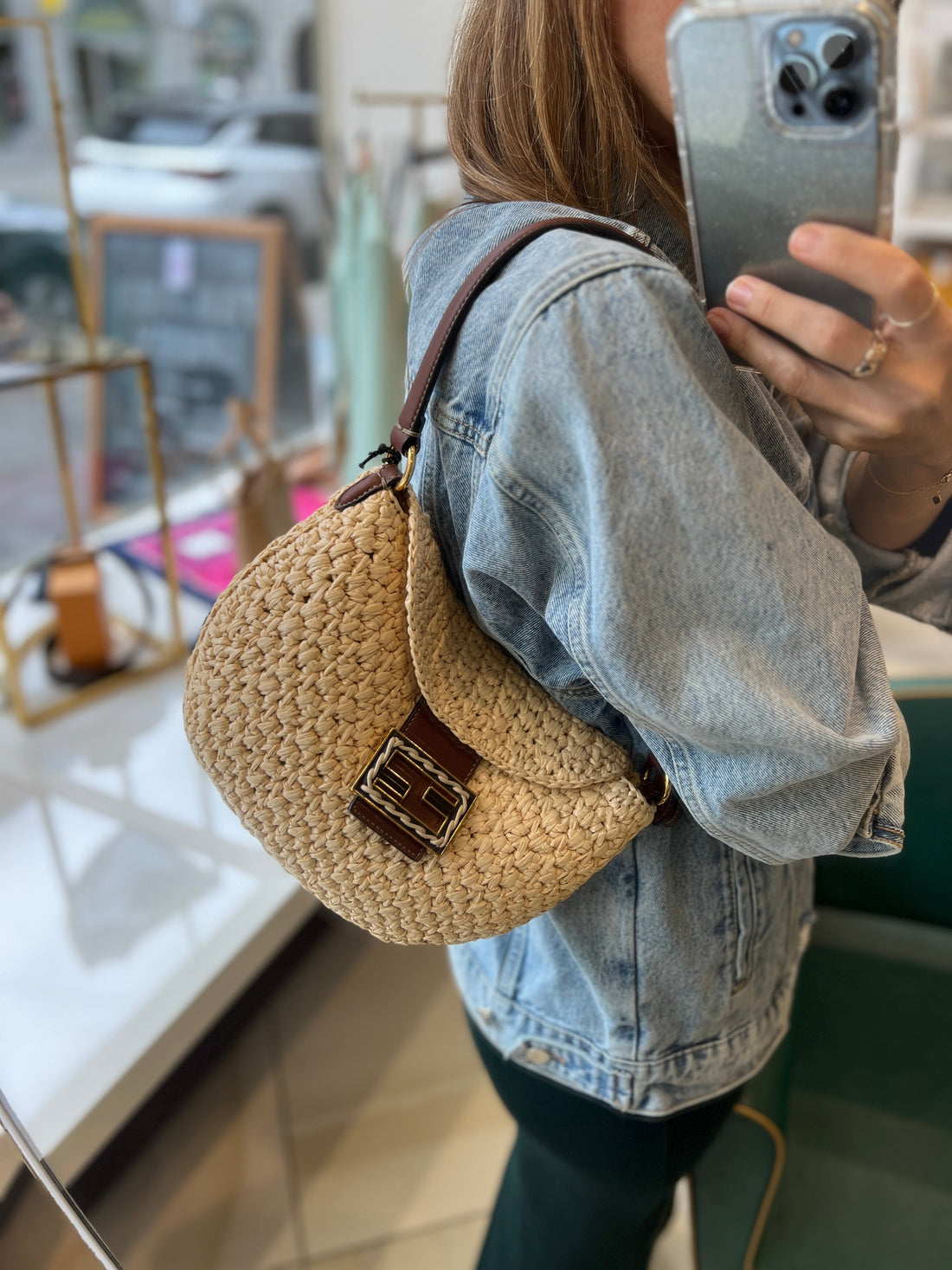 FENDI Raffia shoulder bag Color: Beige and brown New Condition (Our Conditions) L 20 cm...