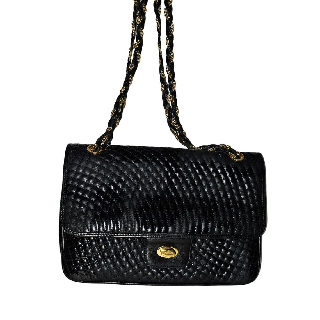 For sale is a vintage, unique, AMAZING, Bally, diamond design, quilted black leather, two-way style-...