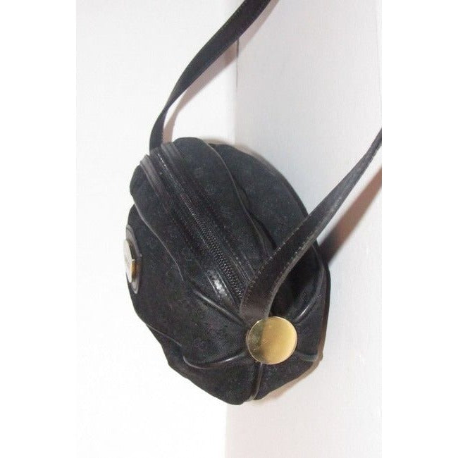 * For sale is an unusual, early Gucci, black micro Guccissima print canvas and black...