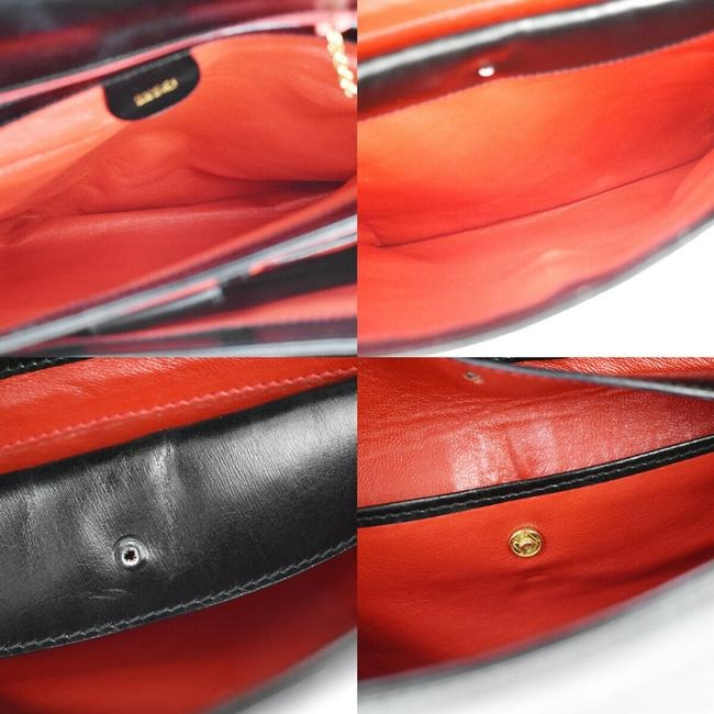 Gucci One Of A Kindearly Supple Black Leather With Navy And Red Stripe Accents Canvas Shoulder Bag