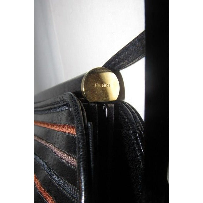 For sale is a vintage, Fendi, mod look, black leather, two-way- shoulder purse or clutch...