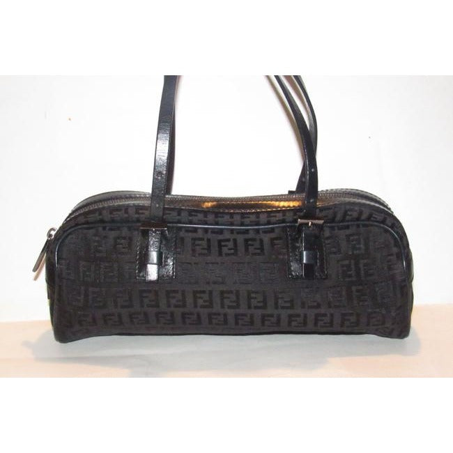 Fendi Shoulder Pursesdesigner Purses Black Small F Zucchino Logo Print Canvas And Leather With Gunme