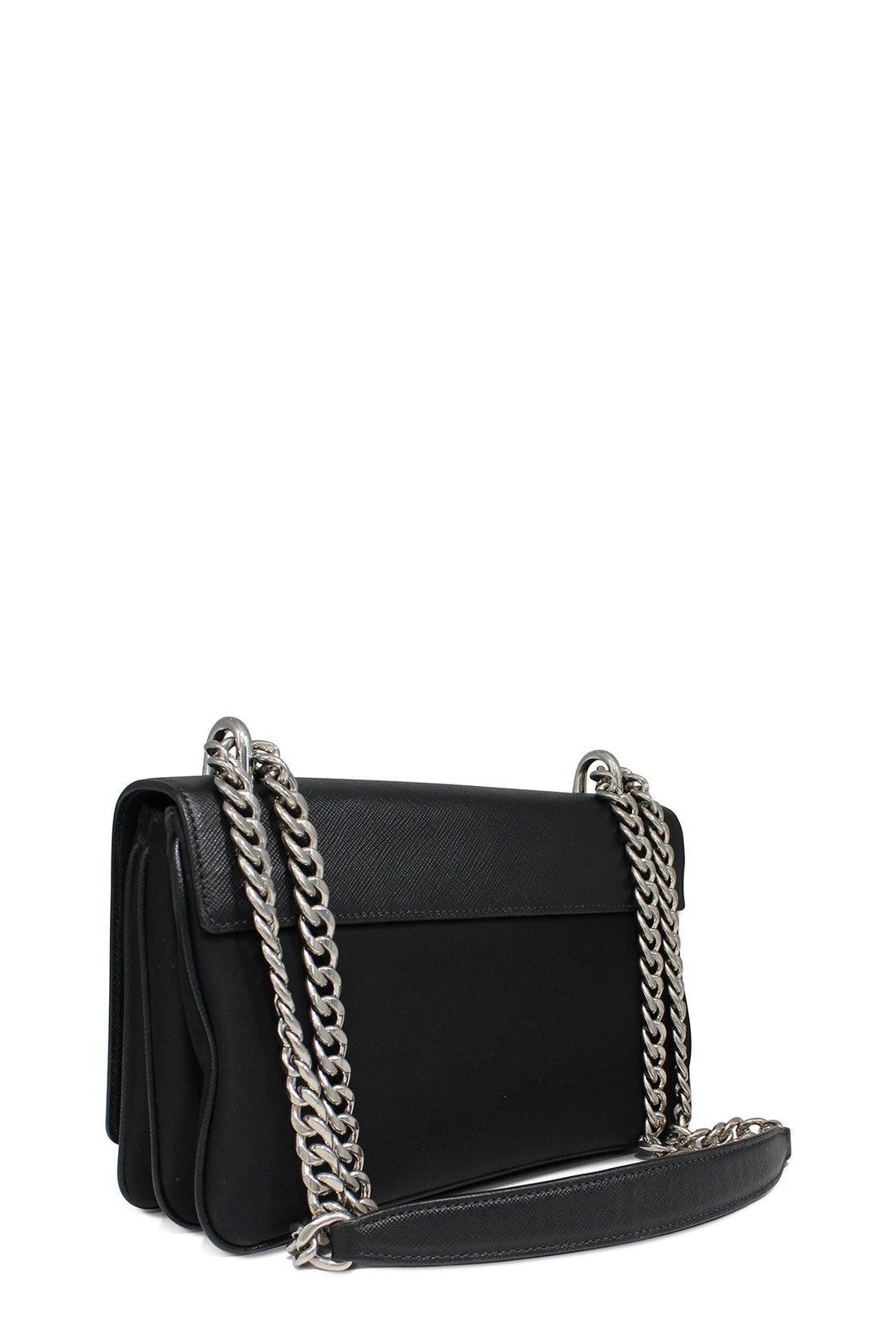 Saffiano Lux Nylon Chain Shoulder Bag Black