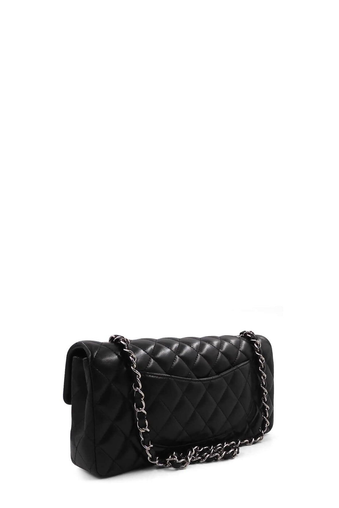 Crafted from smooth lambskin, this Chanel East West Flap bag is a classic beauty. Its...