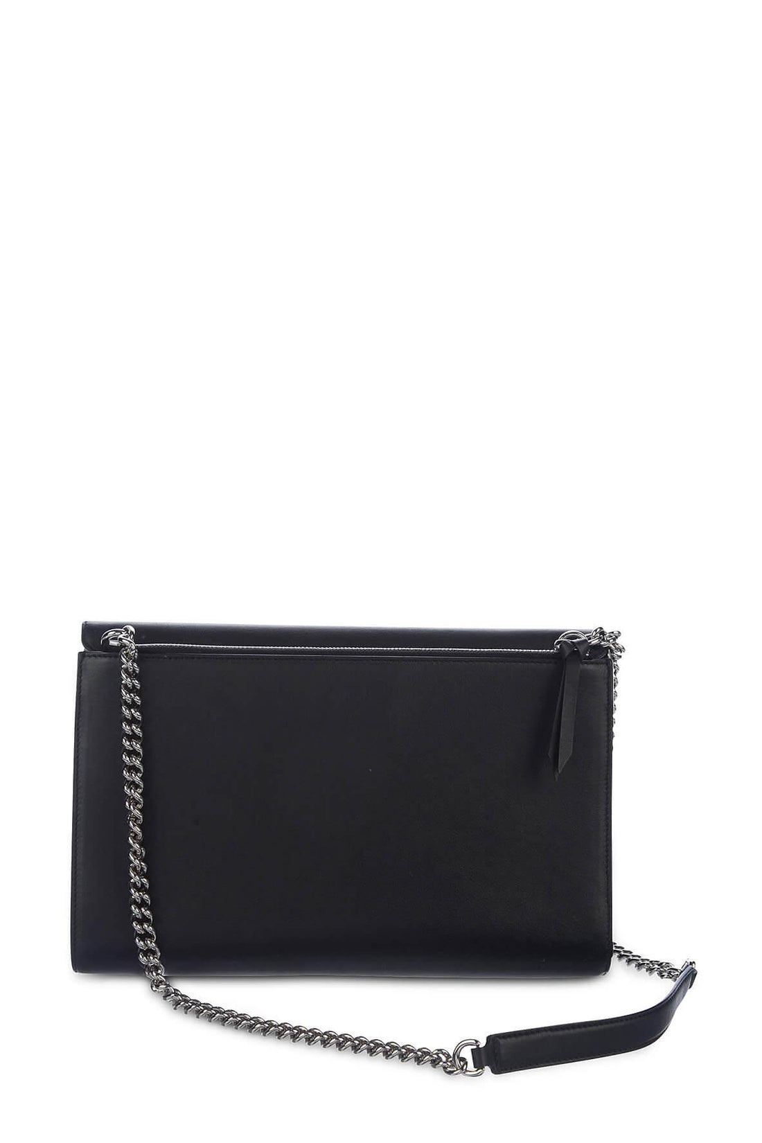 This chic handbag comes in lovely polished black leather. Featuring a double bijoux silver chain...
