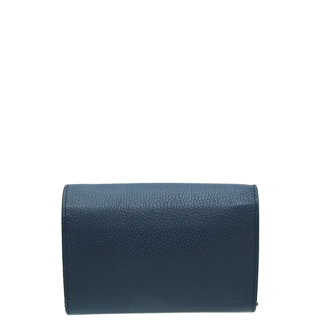 Material: Navy Blue Leather and Tiger Head Closure with Crystals Hardware: Silver Features: Pockets: 16 Card...