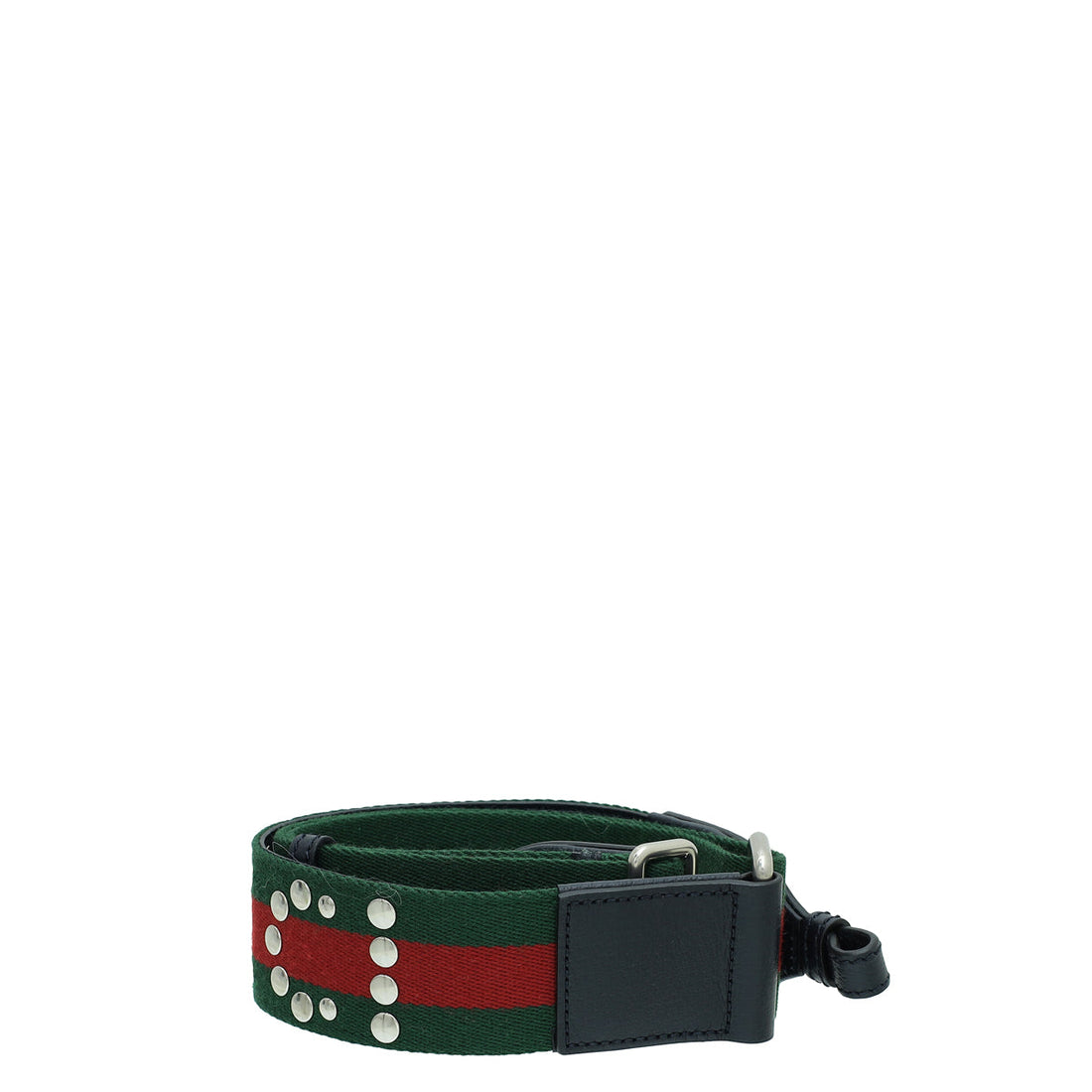 Material: Navy Calf Leather with Green/Red Web and Studs Hardware: Silver Inclusions: Dust Bag Condition:...