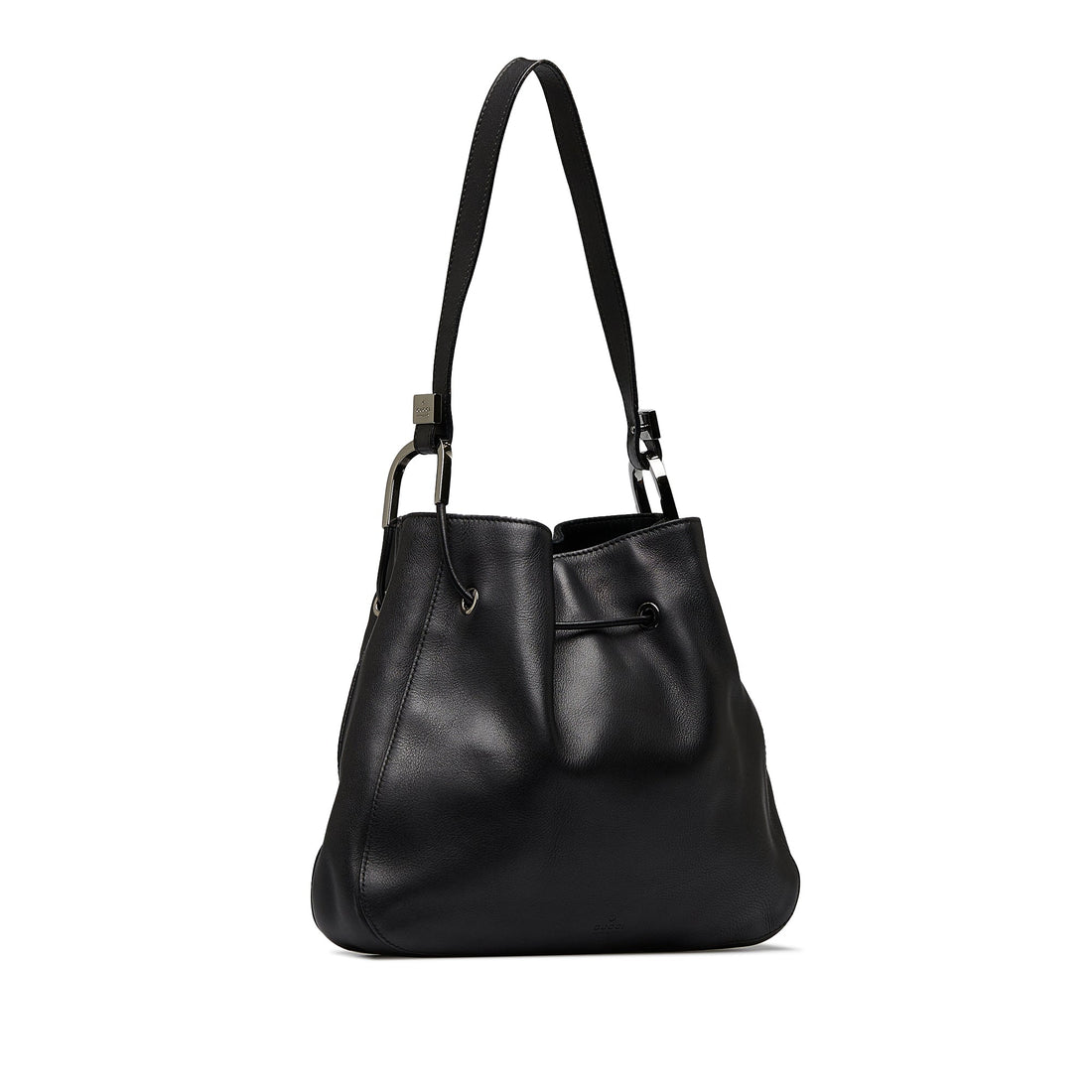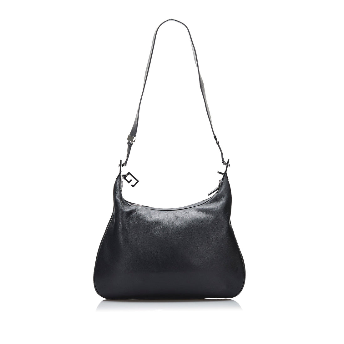 This elegant and simple Gucci shoulder bag was made of black leather. It is comfortably...