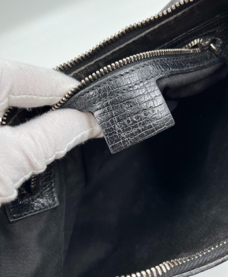A timeless vintage Gucci black leather shoulder bag. This is a hard style bag with...