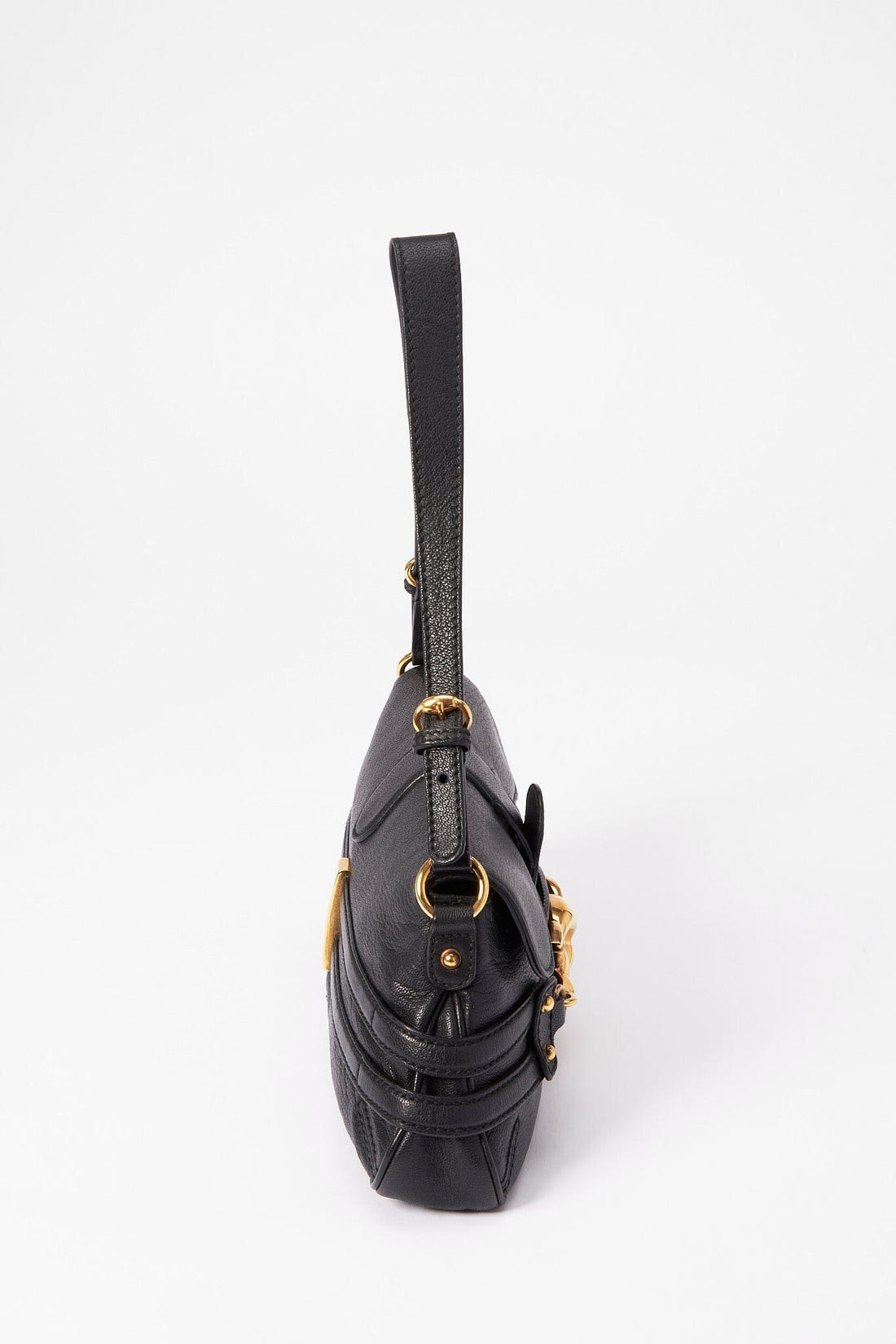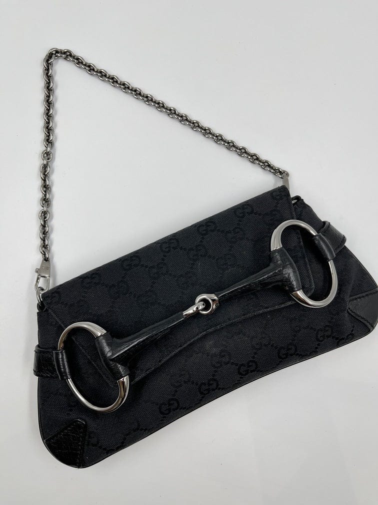 The perfect Gucci party bag! Crafted from black leather with chunky gold hardware. Inside the...