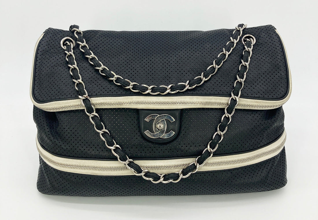 Chanel Black Perforated Leather Expandable Classic Flap Shoulder Bag