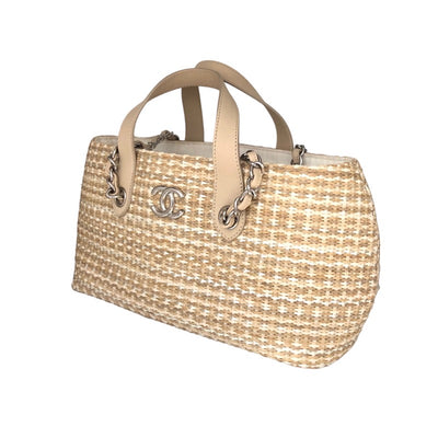 CHANEL Indulge in luxury with the Chanel Straw Rattan Tote. Handcrafted with beige and white...