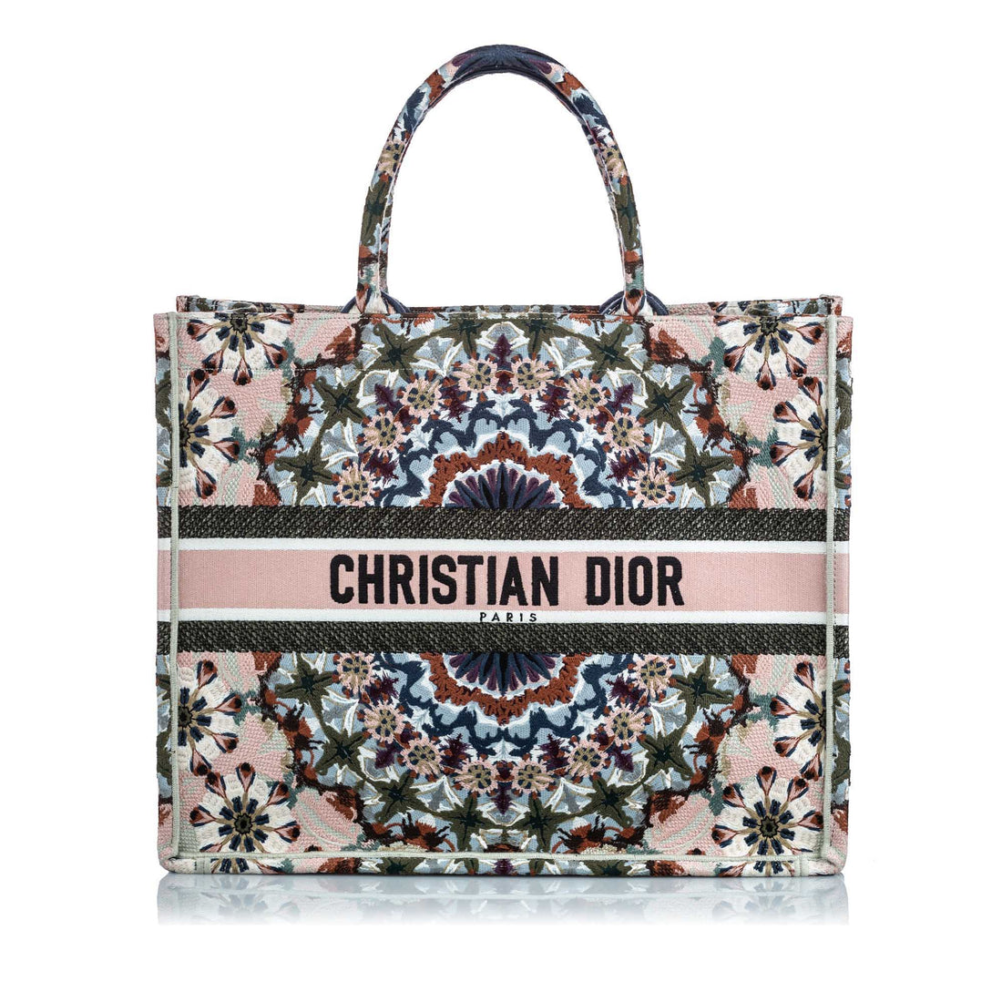 Dior Brown Beige Canvas Fabric Embroidered Book Tote Italy