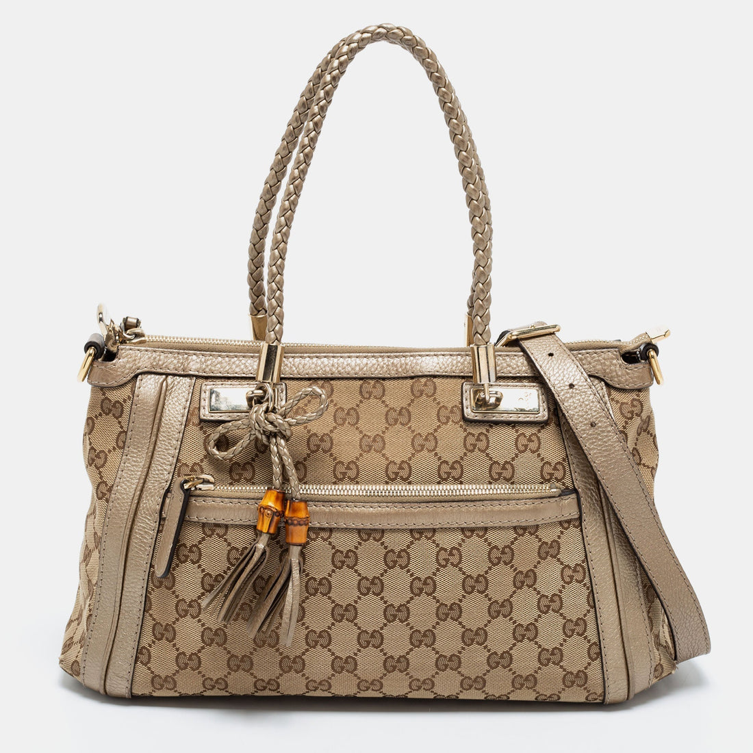 Gucci Beige/Brown GG Canvas and Leather ToteA fresh take on femininity this bag stitched from...