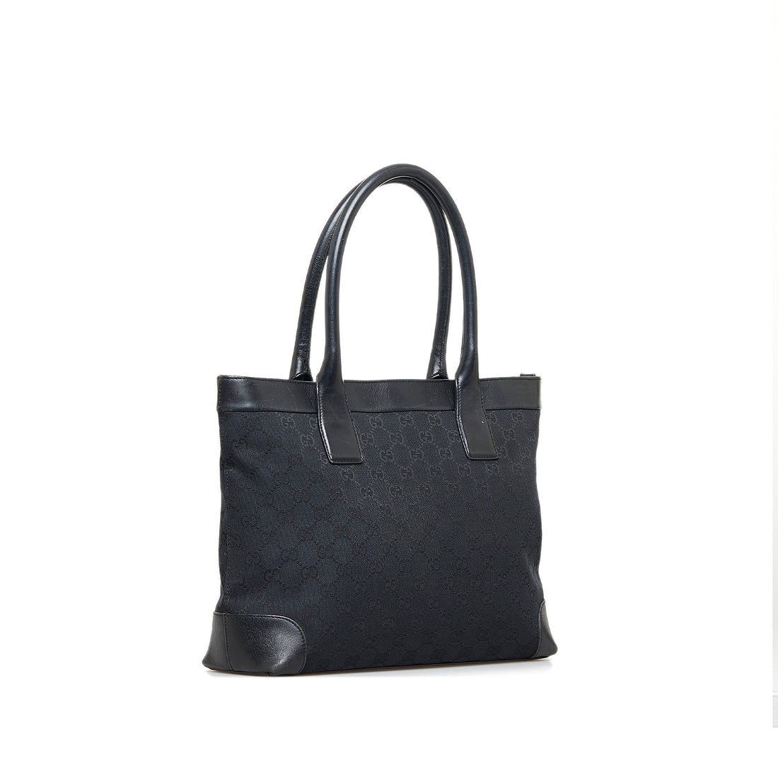Product Details: Black Gucci GG Canvas Tote Bag. This tote bag features a canvas body...