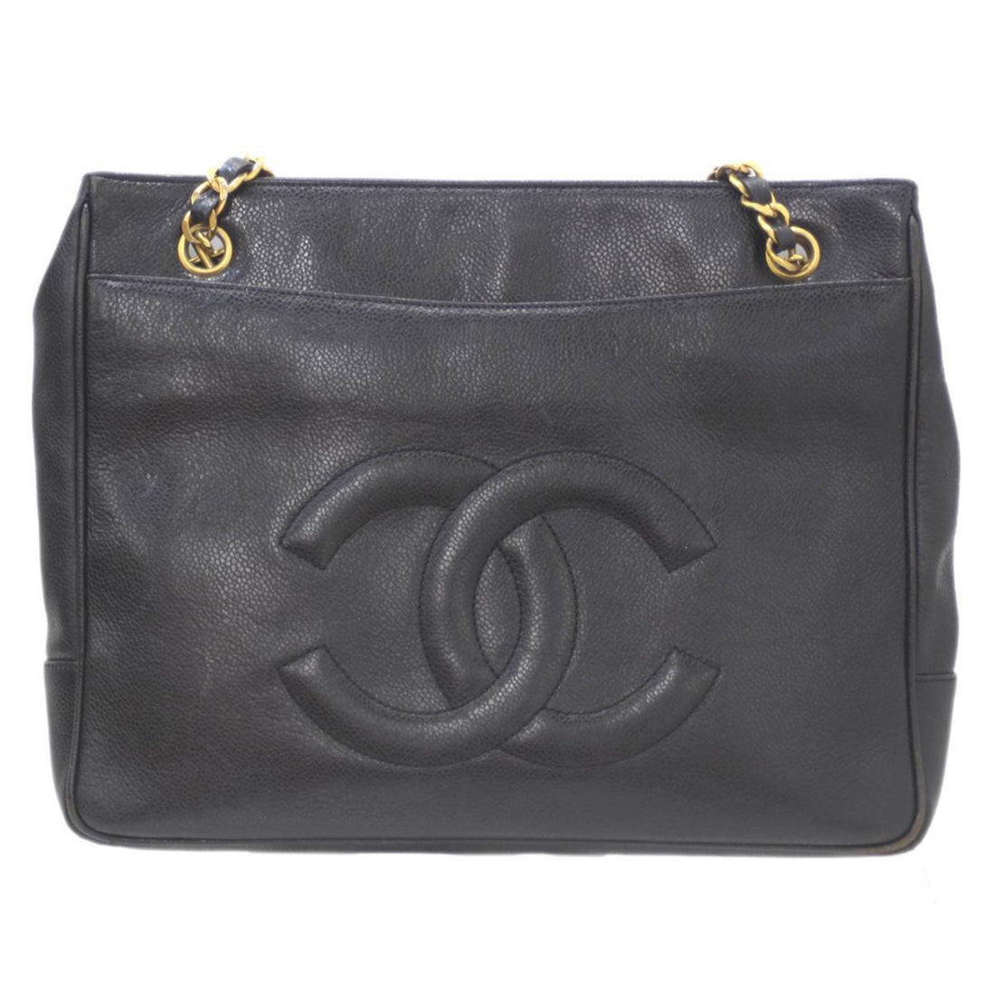 Chanel Matelasse Coco Mark Chain Tote Bag Shoulder Caviar Skin Leather Black A50995Brand: ChanelGender: WomenModel:...