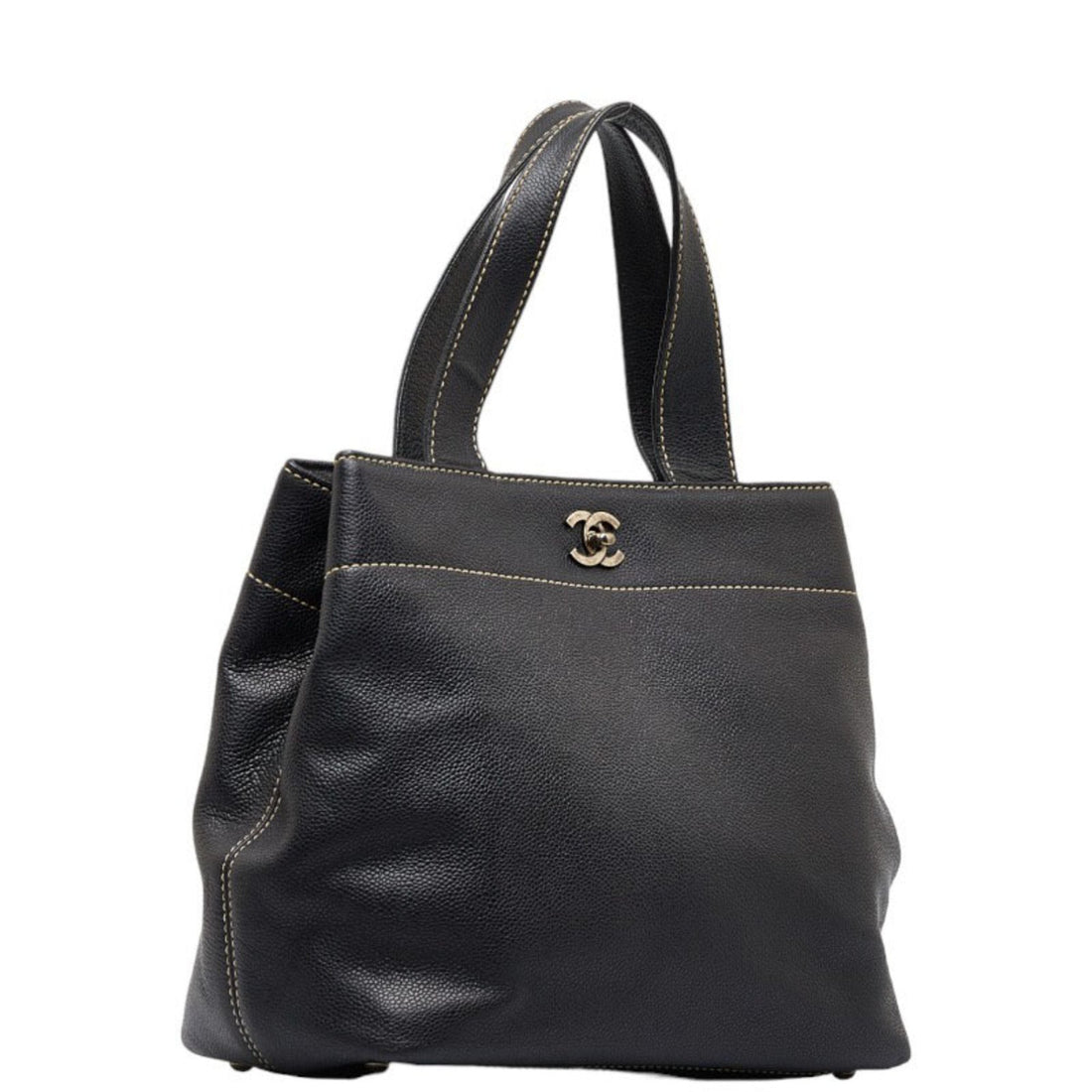 Chanel Coco Mark Turnlock HandBag Tote Bag Black Caviar Skin Ladies