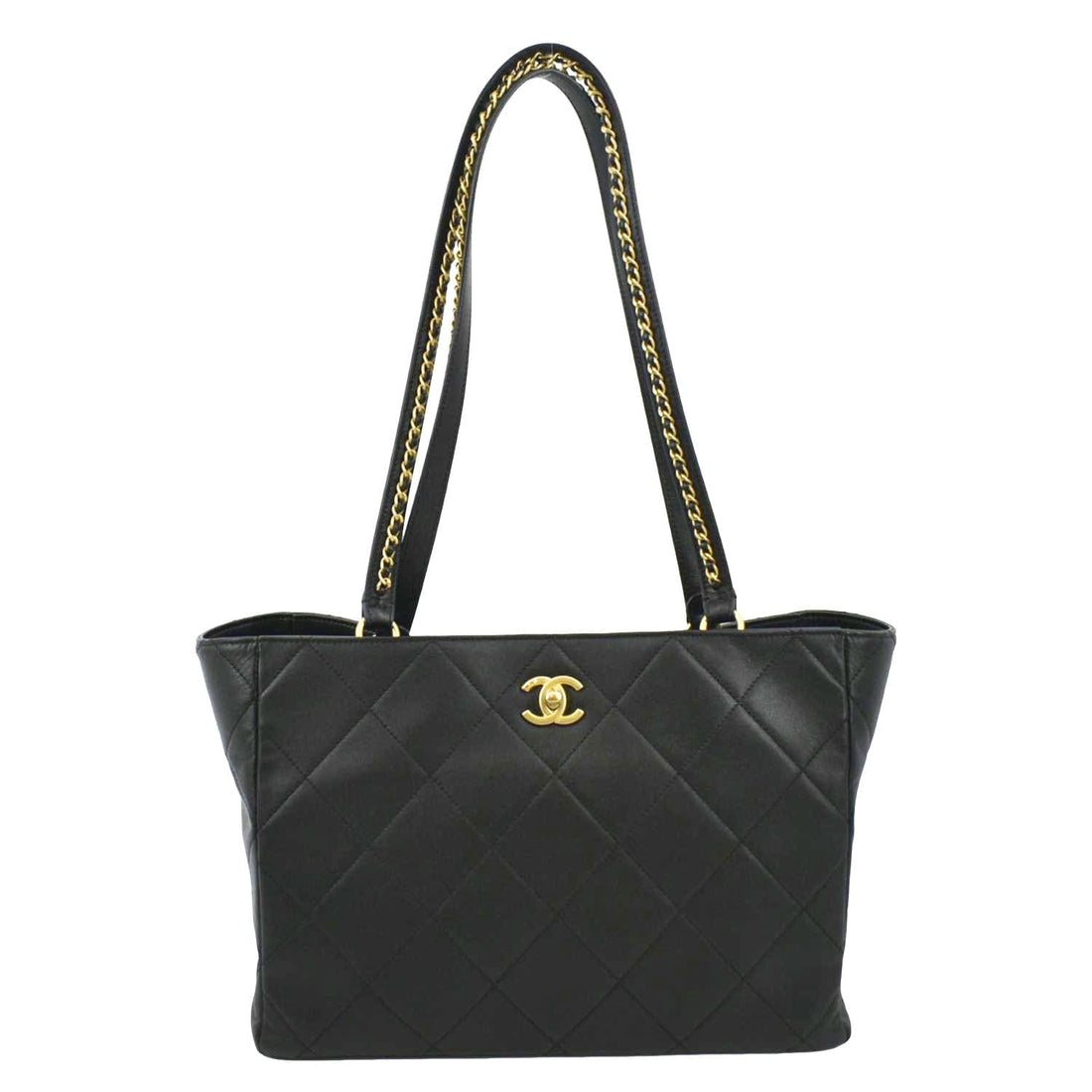 CHANEL Shopping Quilted Leather Tote Bag Black