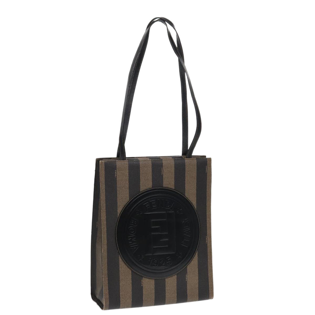 FENDI Pecan Canvas Tote Bag Brown Black gold Auth ep5527