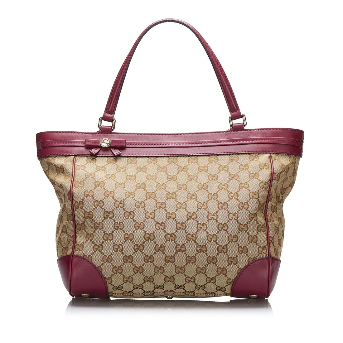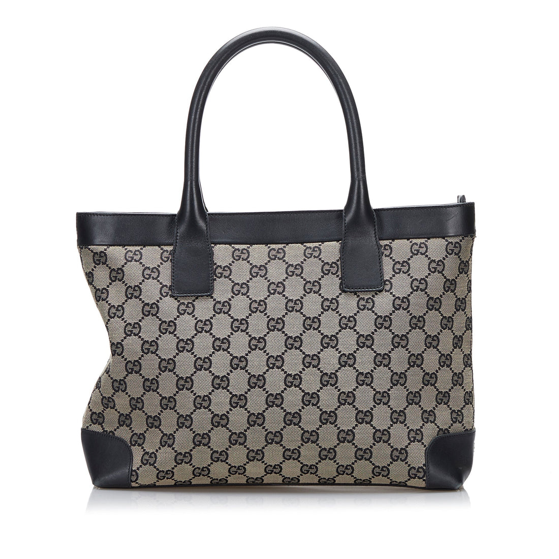 Gucci GG Canvas Tote Tote BagThis tote bag features a canvas body with leather trim,...