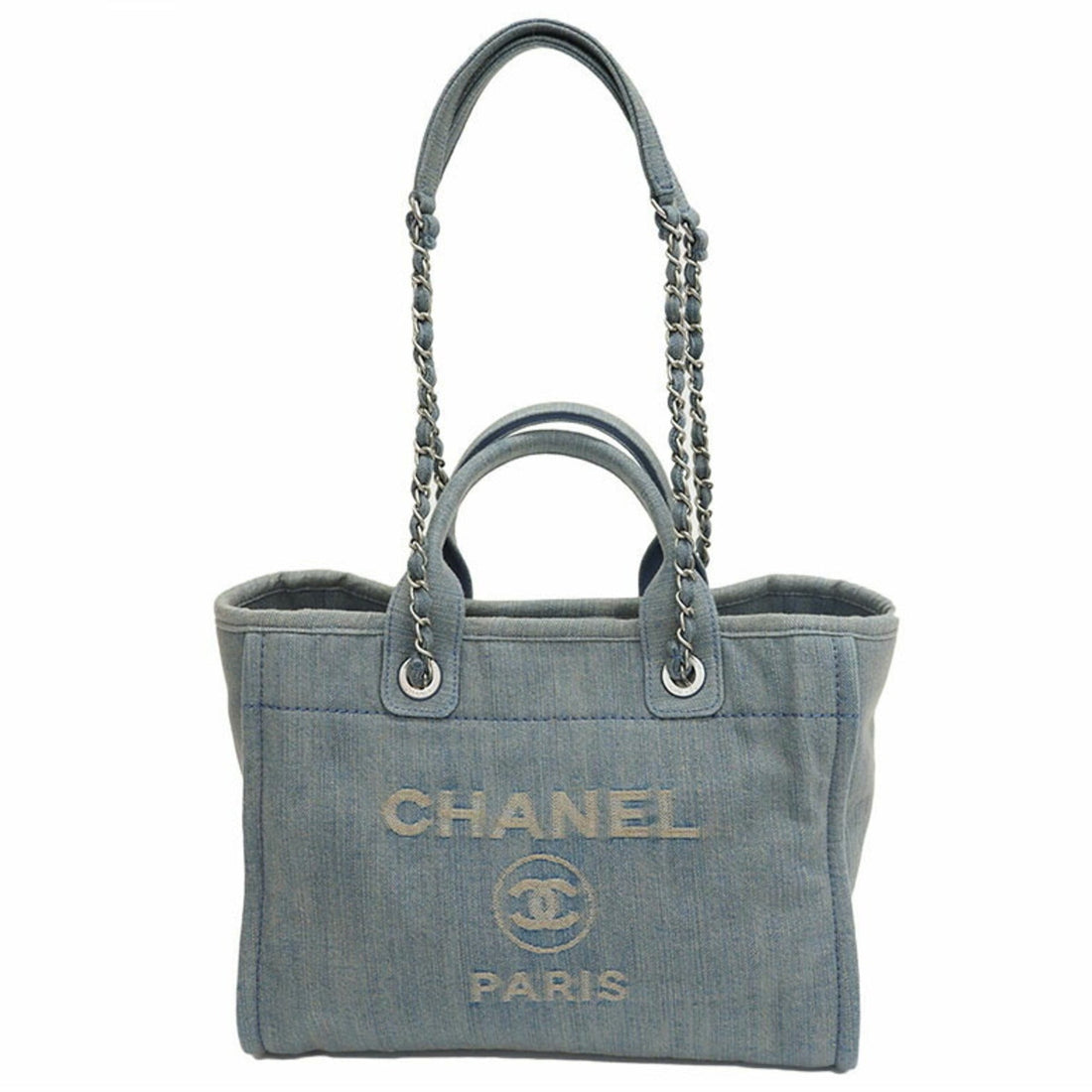 Chanel Denim Shopping Bag Tote Light Blue Deauville Women's