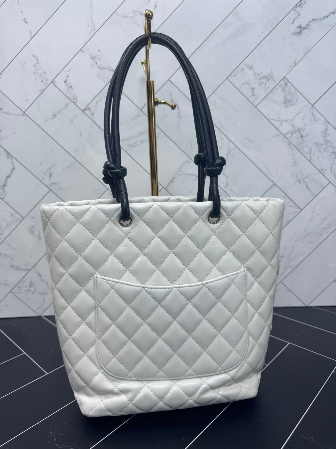 Chanel White Quilted Lambskin Python Medium Cambon Bucket Tote