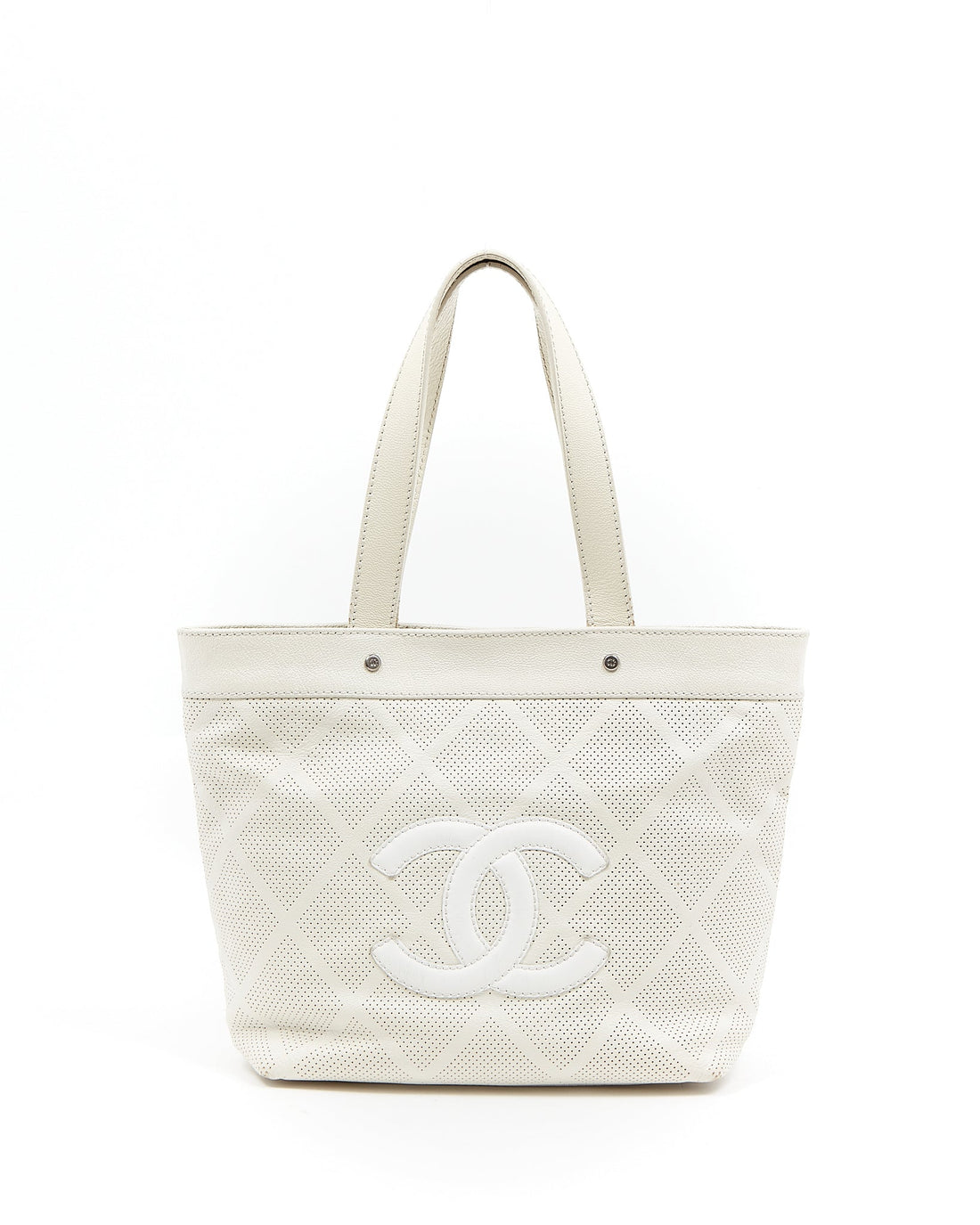 Chanel Shoulder Shoulder Bag Hand Bag Bag Tote Bag Beige White