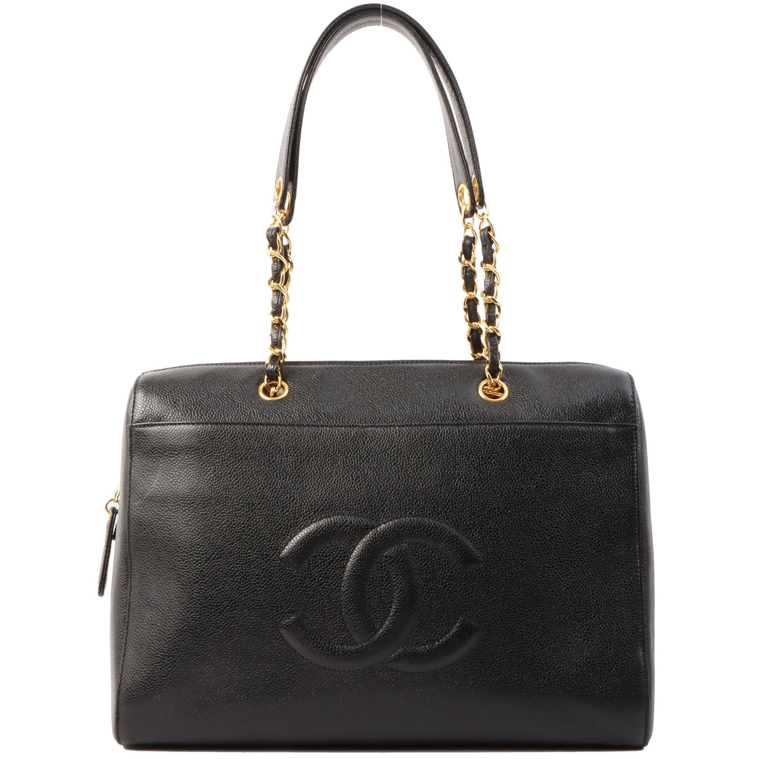 Chanel Around 1998 Made Caviar Skin Cc Mark Stitch Chain Tote Bag Black