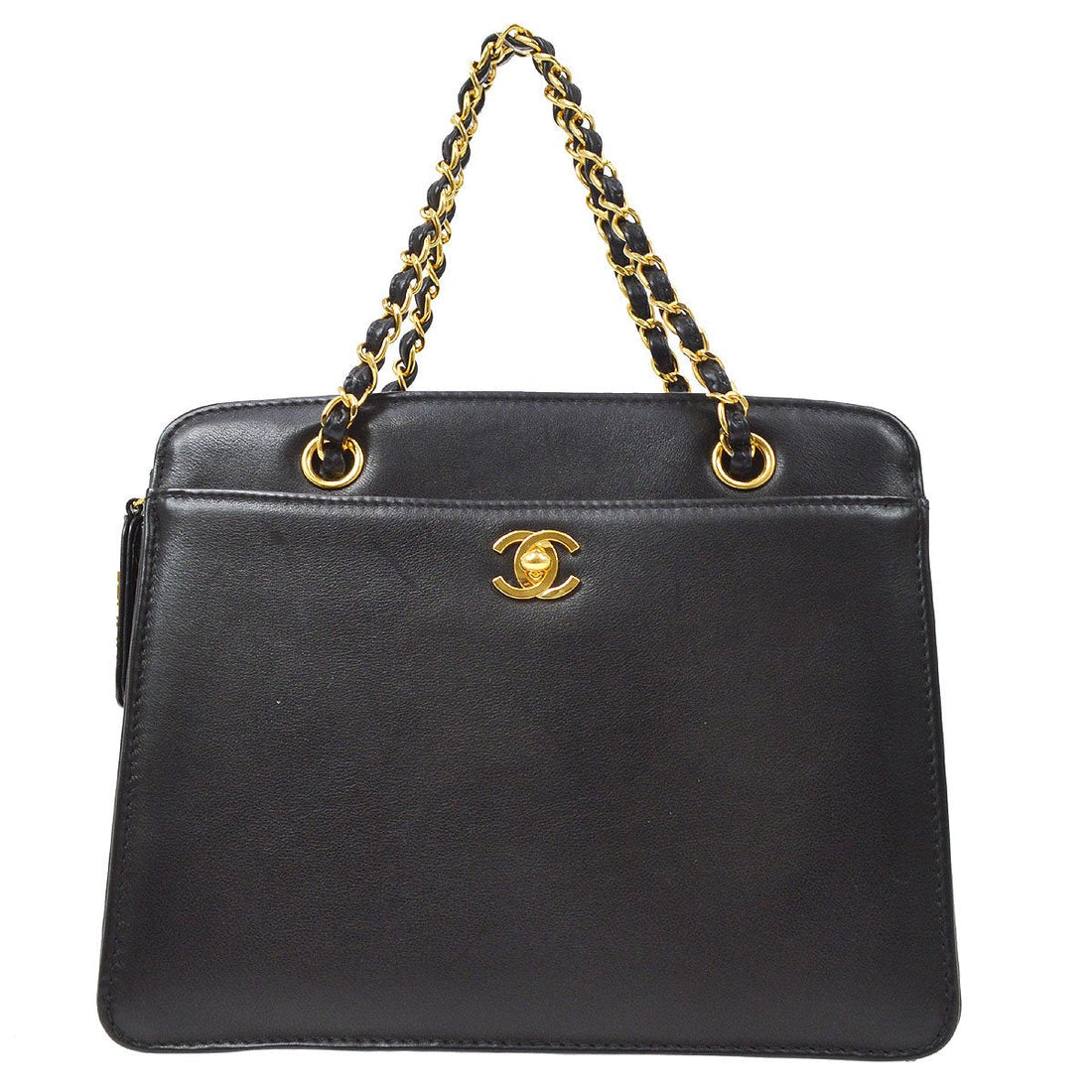 CHANEL Around 1995 Made Caviar Skin Turn-Lock Chain Tote Bag BlackMeasurements: H 27cm x W...