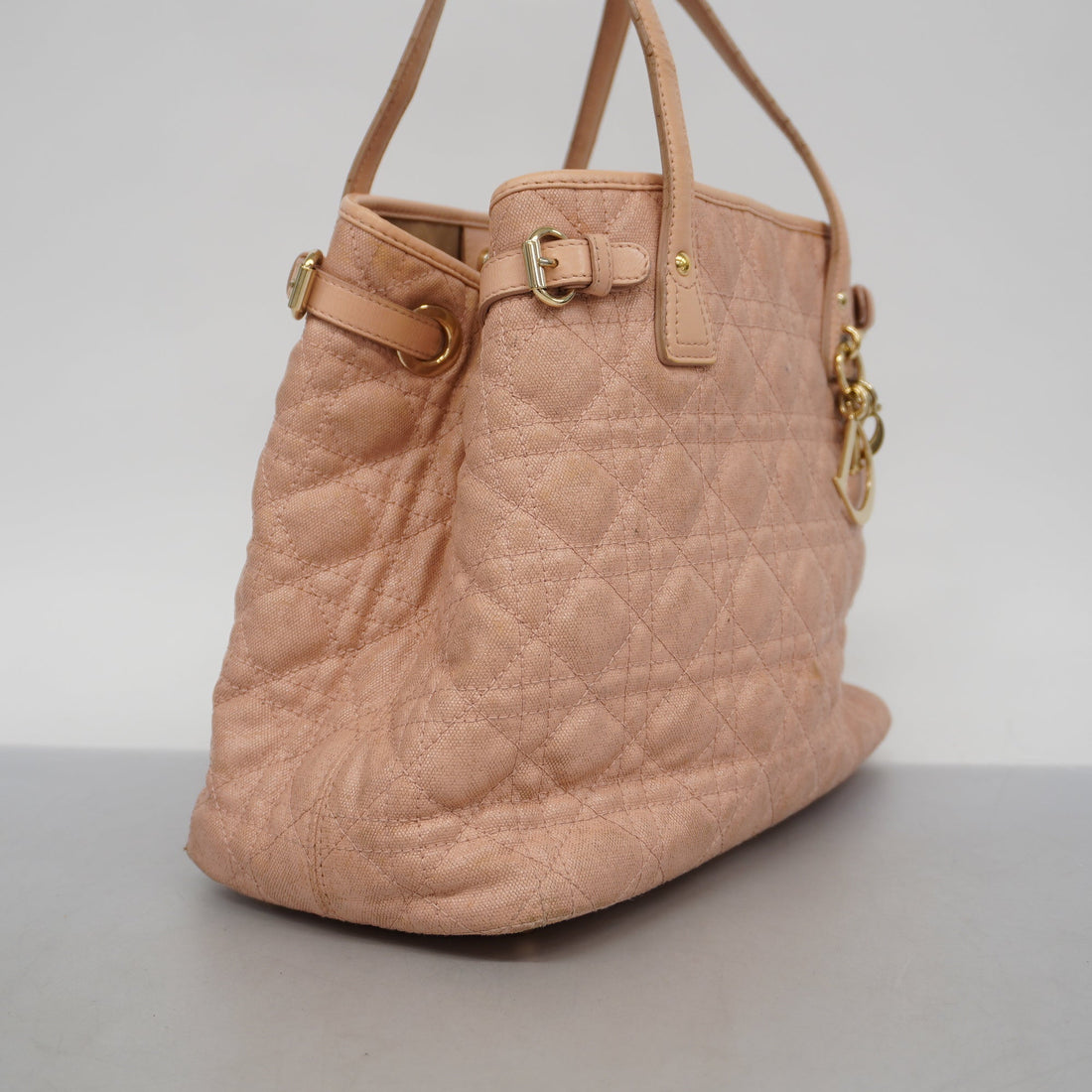 CHRISTIAN DIORAuth Canage Women's Coated Canvas,Leather Tote Bag Salmon Pink