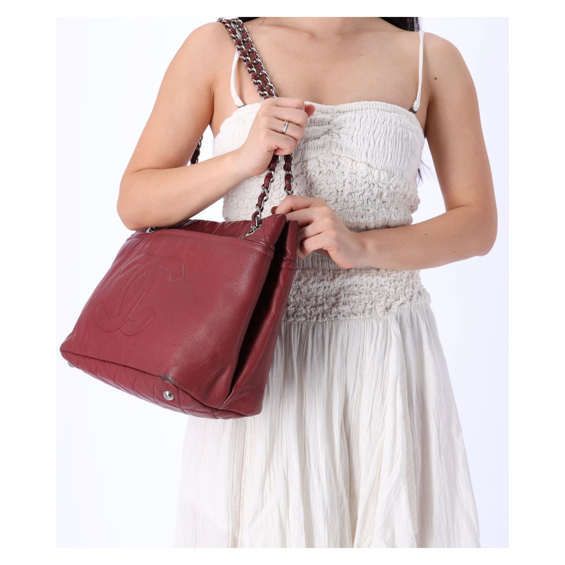 Chanel Classic Caviar Leather Tote Timeless CC Soft Chain Tote Caviar Red