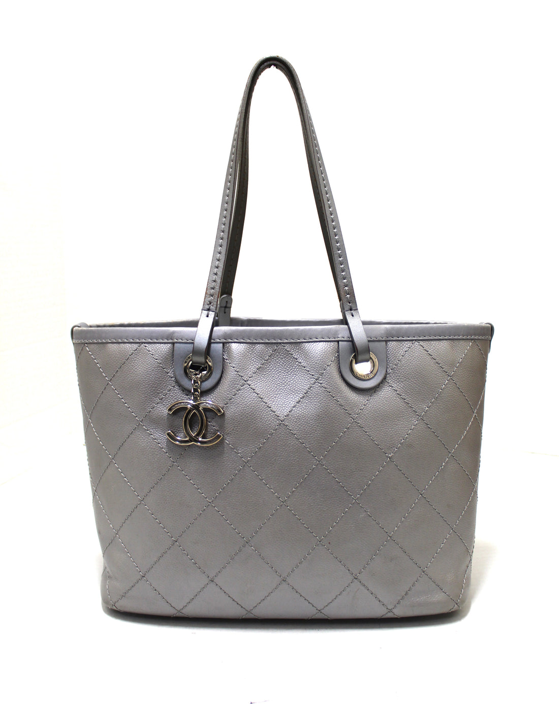 Chanel Silver Fever Quilted Shoulder Tote Bag new conditionRemovable Chanel CC logo charmPolished Silver HardwareExterior...