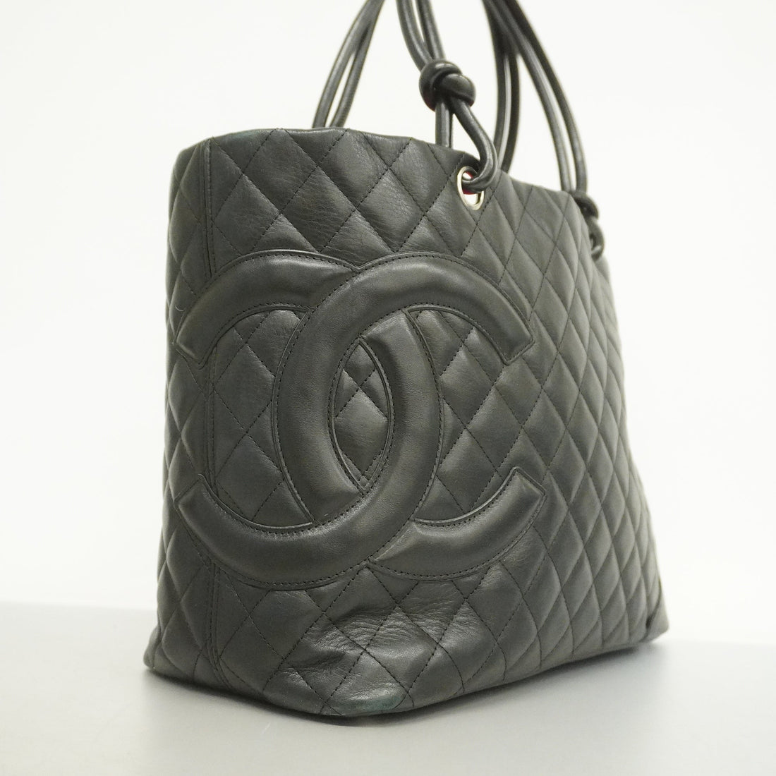 ChanelAuth Ligne Cambon Tote Bag Women's Leather Tote Bag Black