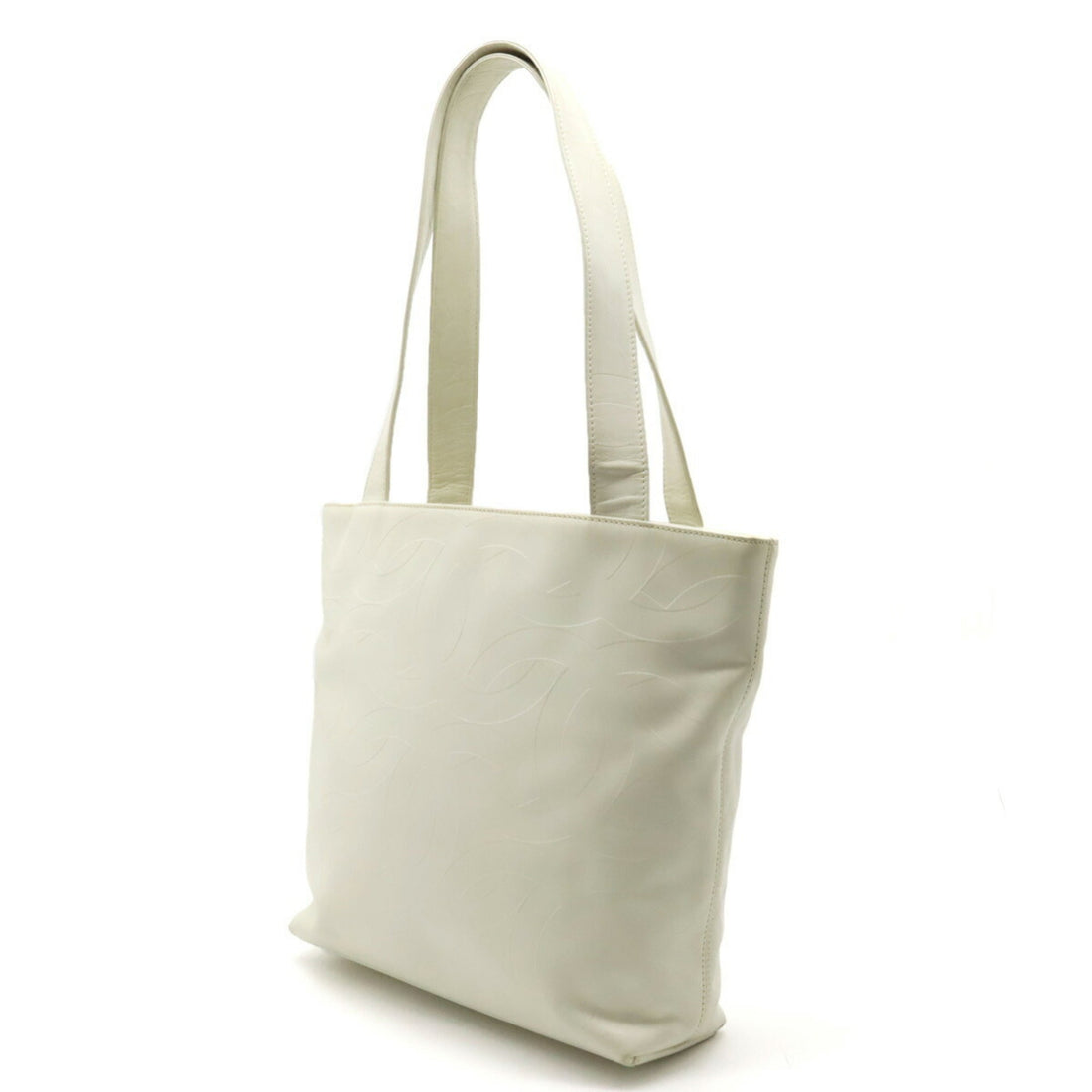 Chanel here mark embossed Tote Bag shoulder leather ivory white