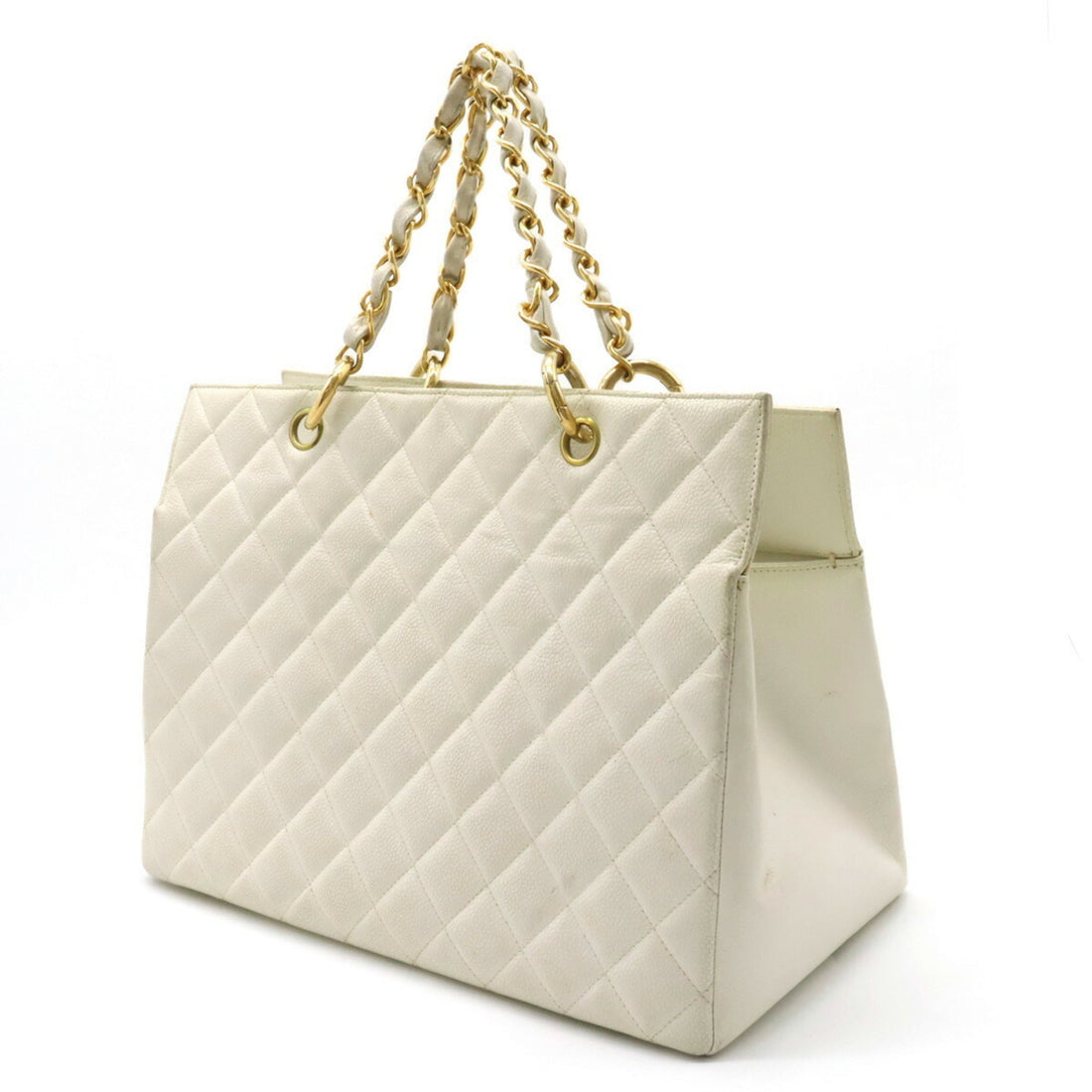 Chanel Matelasse Coco Mark Chain Bag Tote HandBag Caviar Skin Leather White