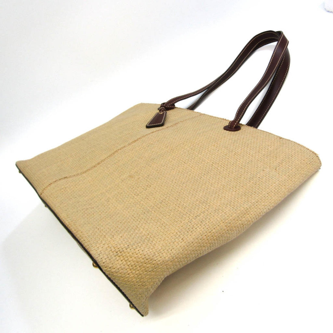 Chanel Coco Mark Women's Straw,Leather Tote Bag Beige,Dark Brown