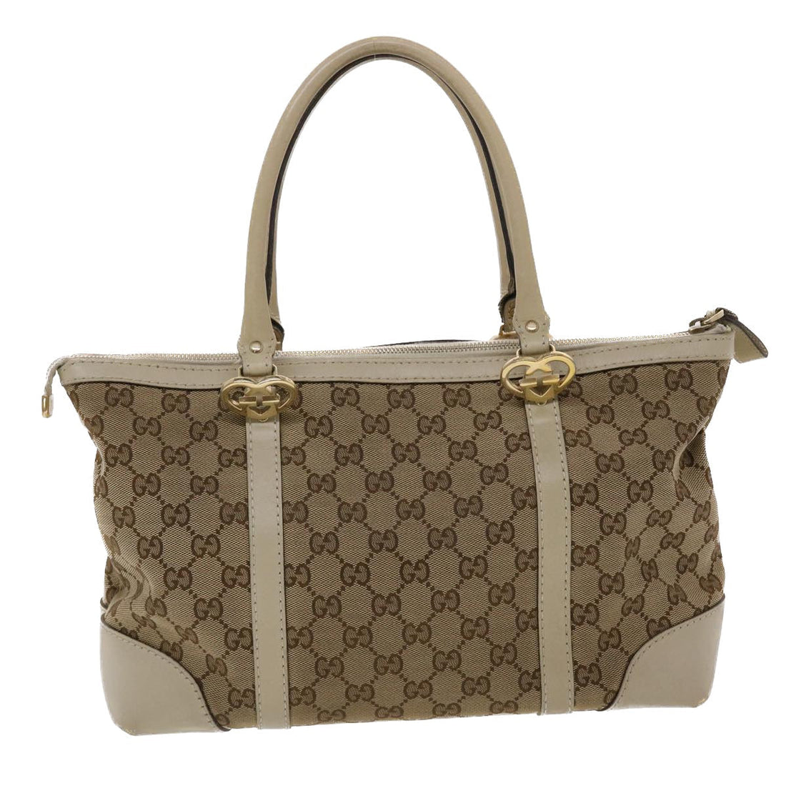 GUCCI GG Canvas Tote Bag Leather Beige 257069 am4730