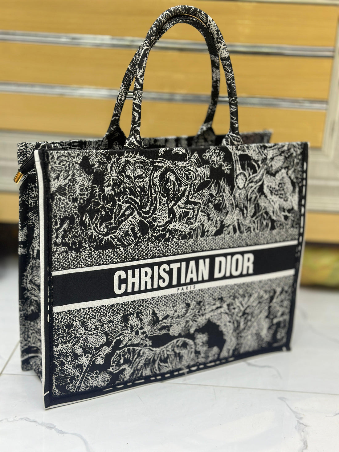 Christian Dior Women Bag High-Quality Denim Tote (Black/White-1)
