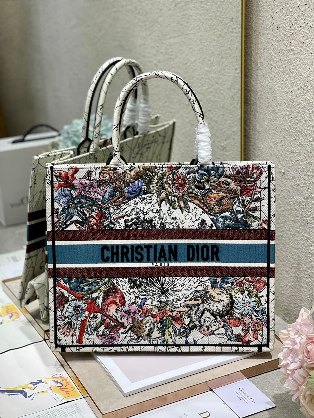 DI Large Book Tote Latte Multicolor Zodiac Embroidery, Latte Multicolor, For Women Women’s Handbags, Shoulder Bags, 42cm CD M1286ZRHP_M941
