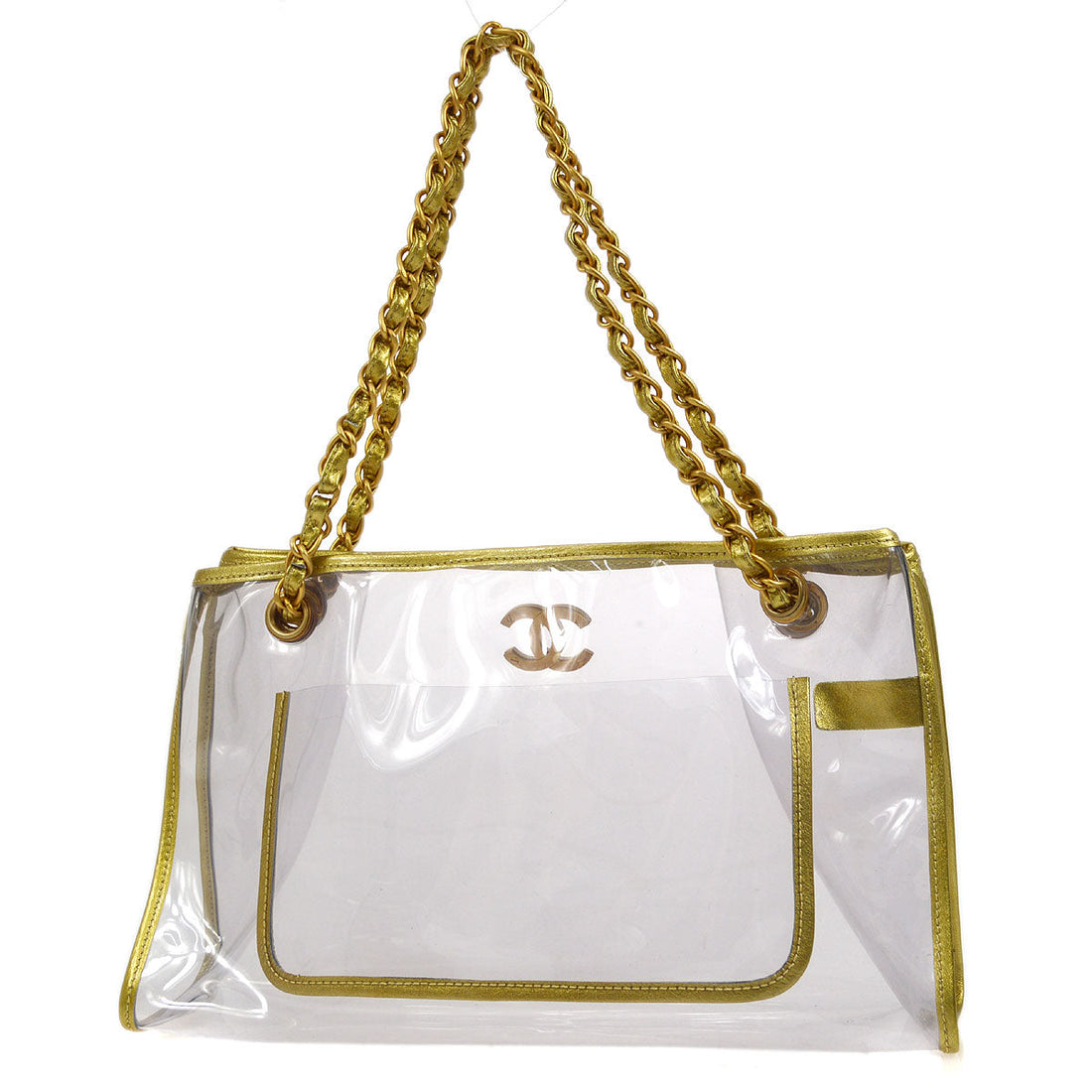 CHANEL Double Chain Shoulder Tote Bag Clear Vinyl Pocket Outside: - Inside: Pocket x1 Size(Inch)...