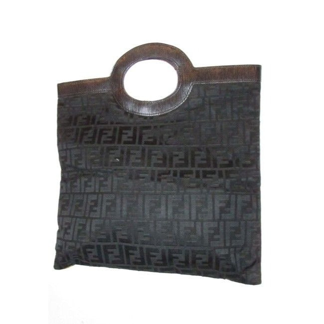 Fendi Clutch Canvasleather Top Handle Runawayporthole Toteclutch Black Zucca Print Leather And Canva