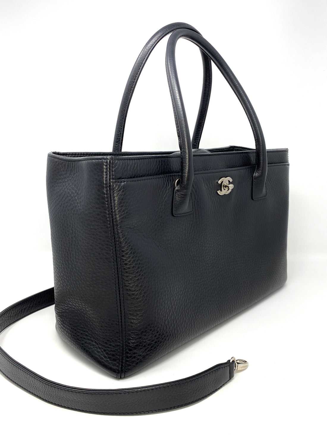 Chanel Executive Tote bag called as Cerf model in black caviar leather with palladium plated...